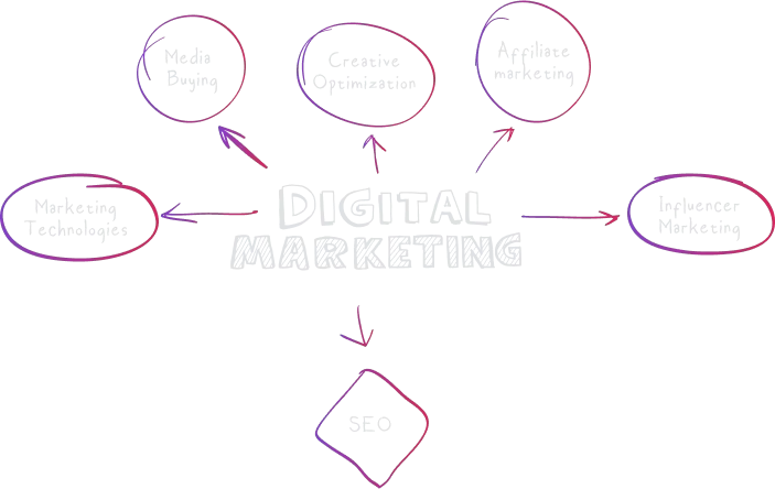 We deliver our services through all performance marketing channels, offering your Affiliate marketing, Media Buying, Influencer Marketing, SEO, Creative Optimization, and Marketing Technologies for a truly comprehensive approach.